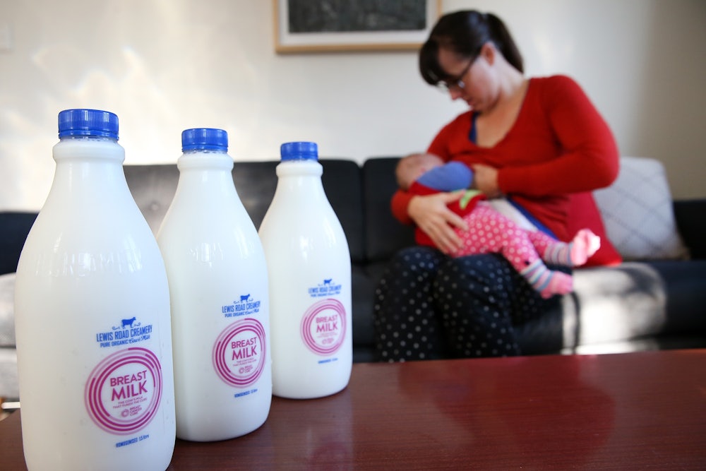 Because nearly all working mothers who breastfeed are also pumping breast milk at work, and the pumping industry has grown to several billion dollars per year, Jung notes that there’s a built-in commercial reason to treat human milk—which has to be expressed, stored, and sometimes frozen and defrosted, so that a child-care provider can feed it to a baby while their mother works—as though it’s synonymous with nursing. But that, she says, is not what any of the research has studied. The science behind breastfeeding’s benefits is already inconclusive enough, without divorcing the product of lactation from the delivery system of intimate mother-child bonding.
