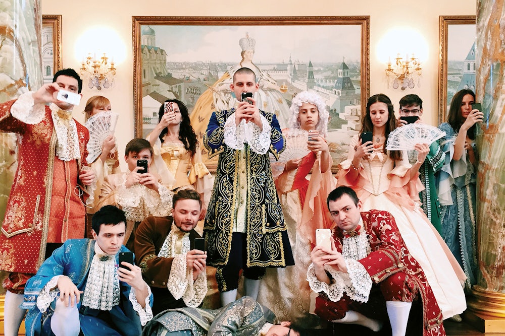 Mishchenkova, who goes by the name Katia Mi on Instagram, calls the project #ConceptTsaritsyno. It’s part of an ongoing Instagram series, @Concept_Project, meant to push viewers to reimagine cultural spaces for themselves. Instead of dismissing tourists who rapidly scan museum hallways and take selfies on their smartphones, Mishchenkova is turning the habits of the digital age into art itself. Dressing in costume helps her and her friends connect with the original spirit of the time, but the quirky poses and Instagram filters make the old landscapes new.