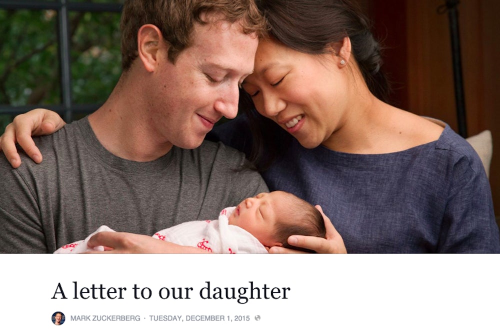 In a Facebook post (What, you thought Zuckerberg was gonna take it to Medium?) announcing the birth of their new daughter Max, the couple said that they will give away 99 percent of their Facebook shares “to advance human potential and promote equality for all children in the next generation” with a focus on “personalized learning, curing disease, connecting people, and building strong communities.”