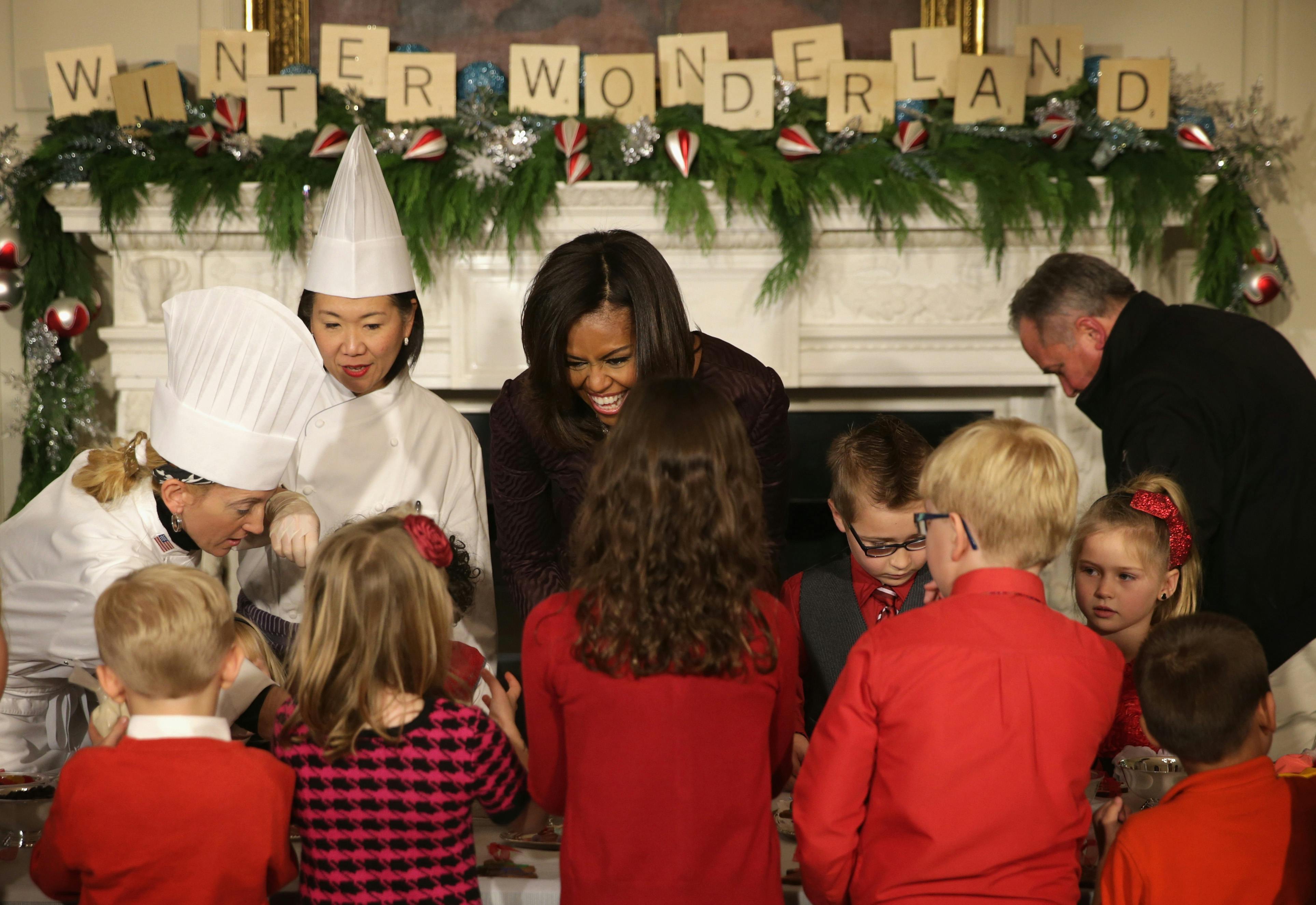 But best of all might be the 500 pounds of cookie dough that will make 25,000 holiday-themed cookies, “including some that look like Bo and Sunny, the Obamas’ dogs.”