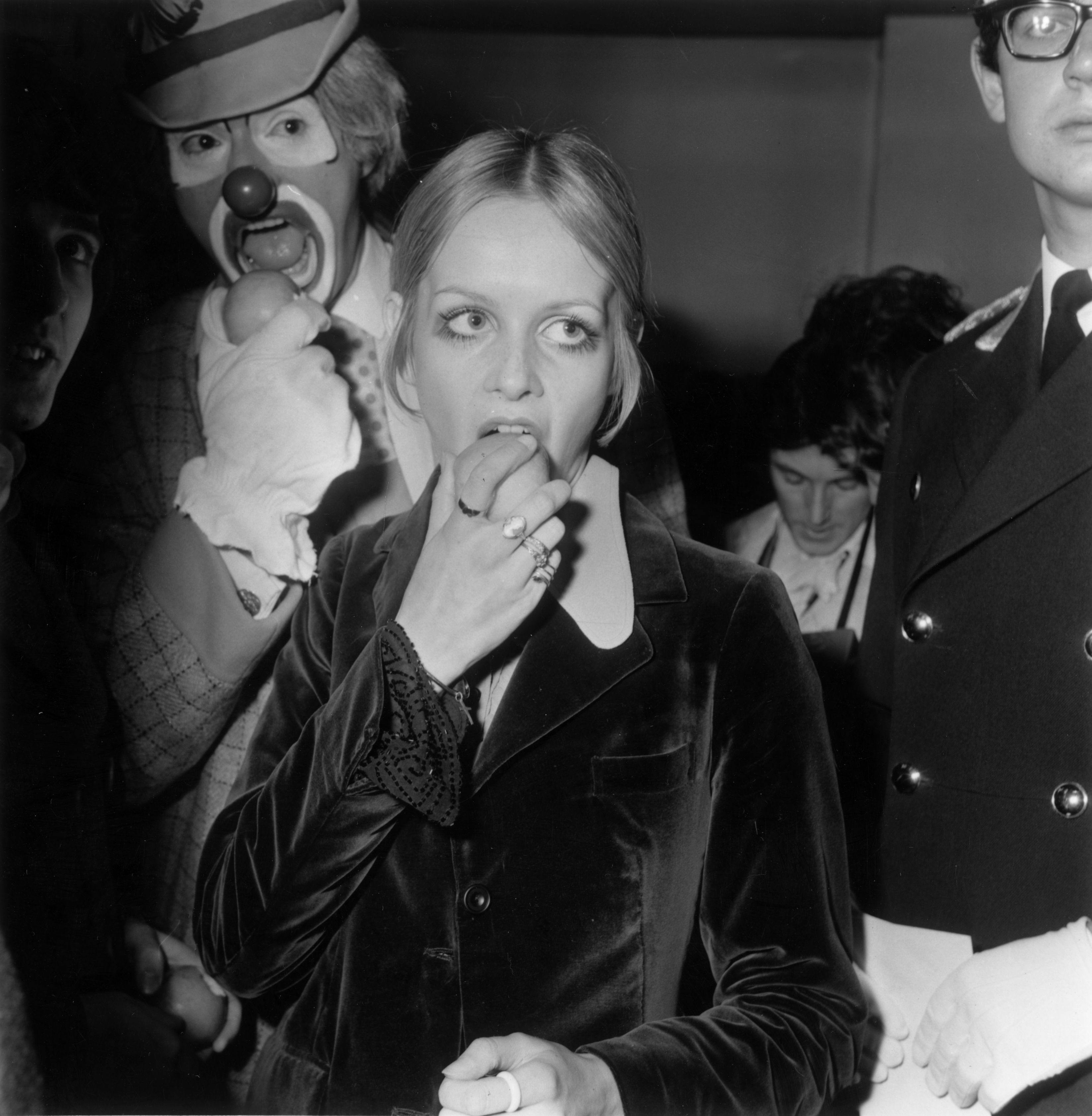 I’m left with a few questions: Did Twiggy finish that apple? Did she give it to that clown standing behind her? And why is there an entire category on Getty Images for “model eating” photos?