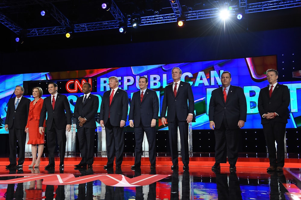After that, things really got rolling. Carly Fiorina said, “Like all of you I’m angry ... it’s time to take our country back,” before subtweeting Donald Trump: “Bombast and insults won’t take it back.” Jeb Bush said, “Our freedom is under attack.” Marco Rubio spoke to the silent majority, saying “Millions of Americans feel left out,” before laying the blame on PC culture: They’re “called bigots because they hold onto traditional values.” Ted Cruz solemnly said, “America is under attack.” Ben Carson astonishingly called for a moment of silence!