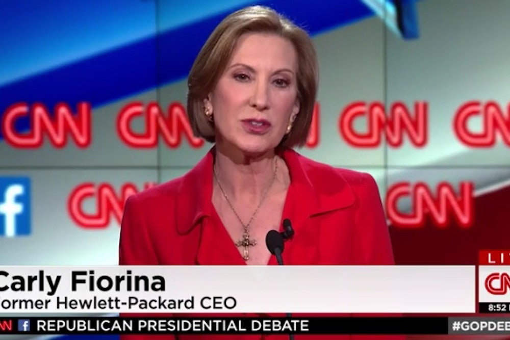 Carly Fiorina is wearing some very subtle jewelry at the Republican debate tonight.