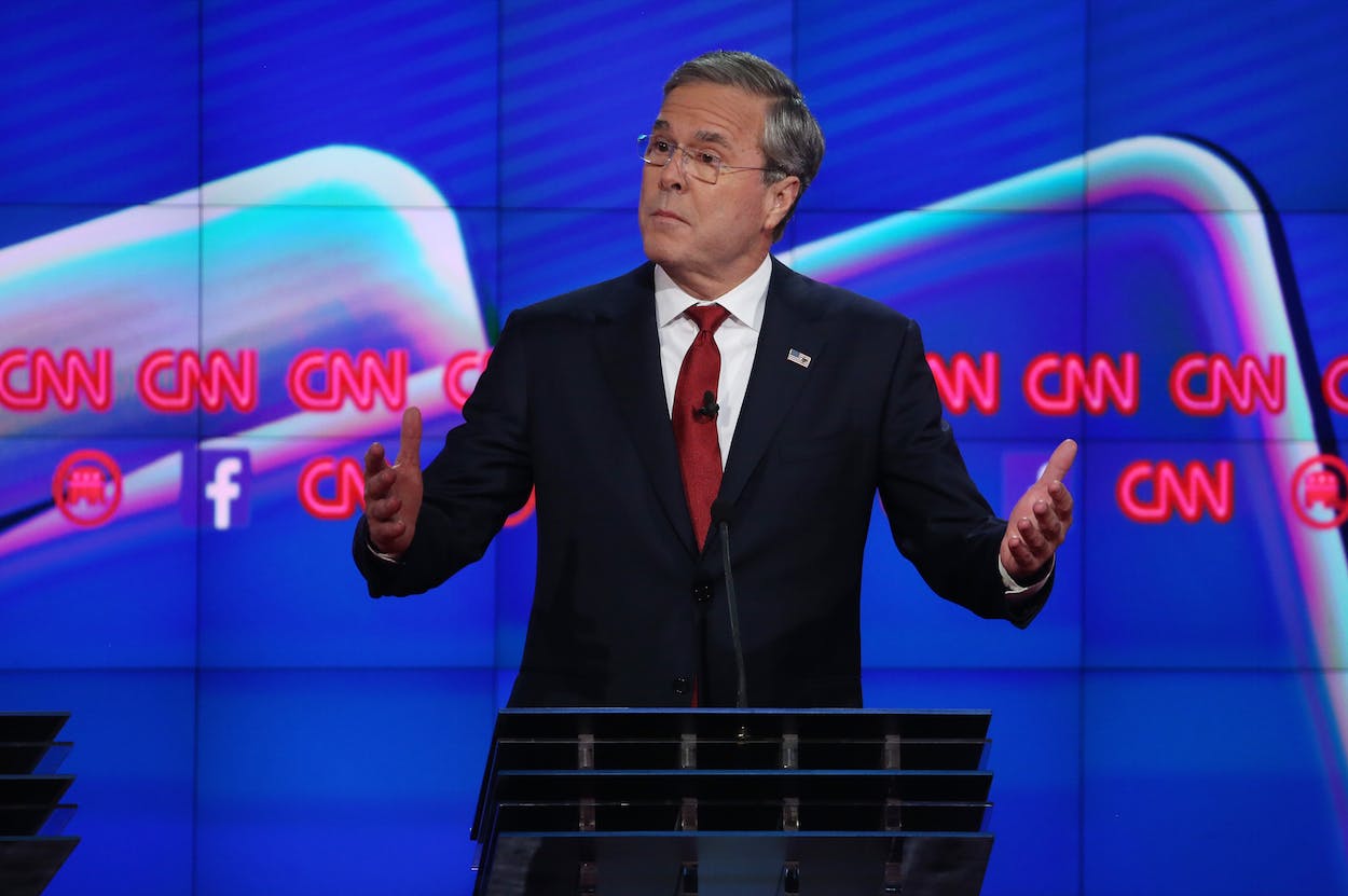 Bush racked up the zingers against Trump from early on in the debate, painting him as an irresponsible, dangerous, and essentially absurd choice for president. He began by describing Trump’s call to ban Muslims from the country as “not a serious proposal,” and one that would alienate America’s Arab allies in the fight against ISIS. “He’s a chaos candidate, and he’d be a chaos president,” Bush concluded, to an outburst of applause.