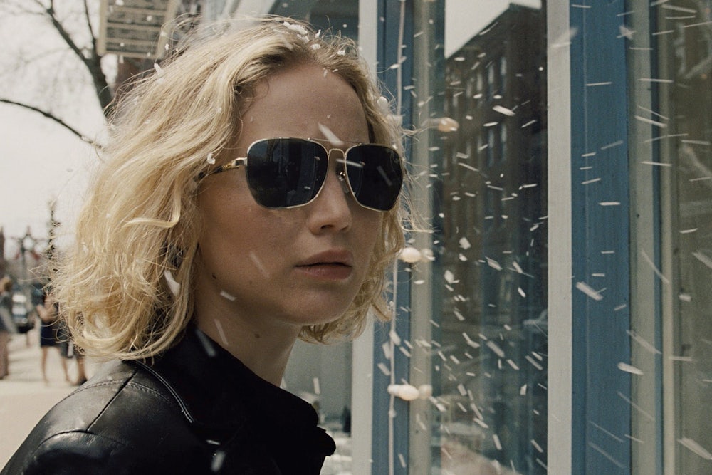 Joy never misses a chance to overemphasize how supposedly magical its character’s journey from suburban single mom to home-shopping mogul is. (This is a film that includes not one but two separate scenes in which fake snow falls from the sky to underline the moment’s otherworldly preciousness.) But Lawrence won’t have any of it. As Joy begins, a title card comes on screen announcing that the film is “Inspired by the true stories of daring women. One in particular.” No doubt Russell comes by his feminist sympathies sincerely, but it’s also a touch patronizing, especially considering that the movie often allows its main character to get through obstacles through convenient or farfetched means. Joy is best taken as a fairytale—a blithe metaphor for self-determination—but Lawrence repeatedly grounds the fantasy in something genuine. In that uncomfortable tension between a filmmaker’s flights of fancy and an actress’s pragmatic grit, Joy might very well speak to a lot of viewers who know that movies aren’t real life, but are willing to pretend otherwise once in a while.