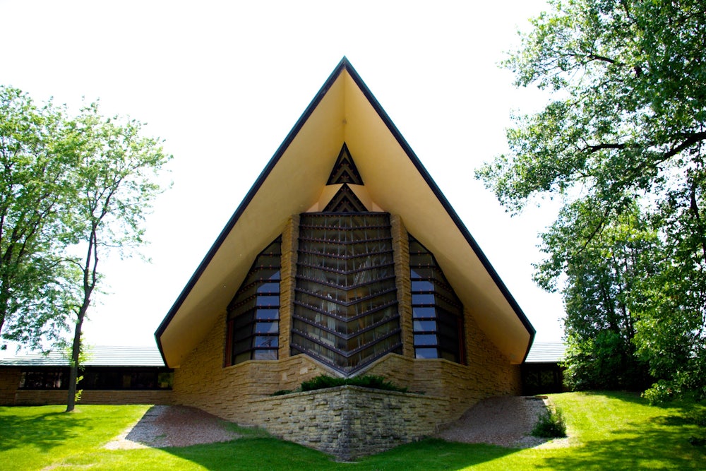Lead image: The prow of the First Unitarian Society Meeting House in Madison WI, designed by Frank Lloyd Wright.