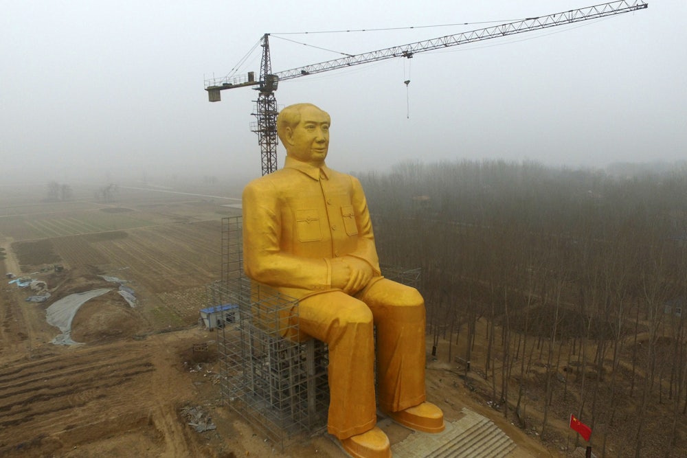 The gilded monument rises above desolate fields in Henan Province, the work of local entrepreneurs who completed the nine-month project in December. It comes amidst a revival of sorts for the Communist leader, who has been praised by President Xi Jinping as “a great figure who changed the face of the nation and led the Chinese people to a new destiny.” Images of the statue spread rapidly on Chinese social media, where commenters were quick to note that Mao, in fact, was responsible for the deaths of tens of millions of people. “Have you forgotten about the Great Famine, building that?” one user posted on the Twitter-like service Weibo. While the statue gives the impression of being made of solid gold, it is actually steel and concrete under its gaudy exterior.