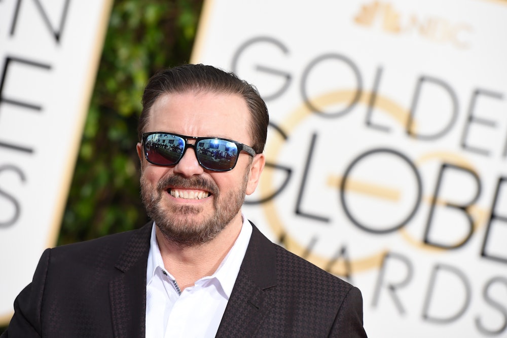 Hollywood’s pay gap is at the top of Ricky Gervais’s joke list.