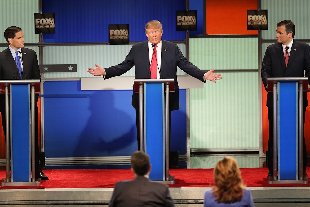 Before that, Cruz and Trump tangled over the question of Cruz’s birthright citizenship. In that exchange Cruz demonstrated his mastery of law and formal debate—“the legal issue is quite straightforward,” Cruz said, “some of the more extreme ones insist that you must not only be born on U.S. soil, but have two parents born on U.S. soil. Under that theory, not only would I be disqualified, Marco Rubio would be disqualified, Bobby Jindal would be disqualified and, interestingly enough, Donald J. Trump would be disqualified.”