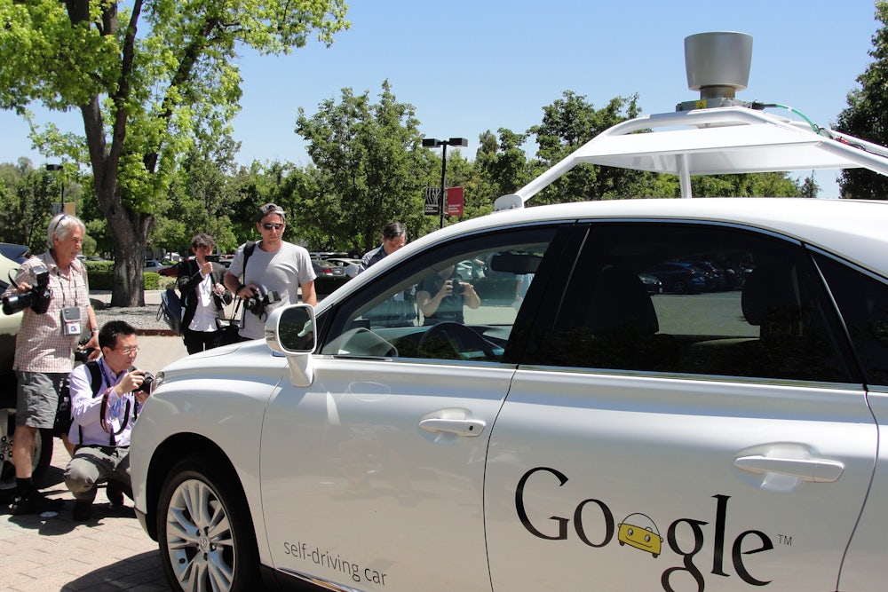 Ten years ago, self-driving car prototypes could barely drive 10 miles across a relatively uncluttered desert. Now they’re expertly weaving through traffic in Silicon Valley, Austin, and Pittsburgh. “The rate of progress,” marveled the engineer, “is mind-blowing.” They dropped me off at Google’s headquarters, where I wandered up to a rooftop parking lot. There, Google’s latest prototype—so new that journalists aren’t allowed to ride in it—was tooling around: a cute, egg-shaped little pod that was about as big as a Smart Car, except it didn’t even have a steering wheel.