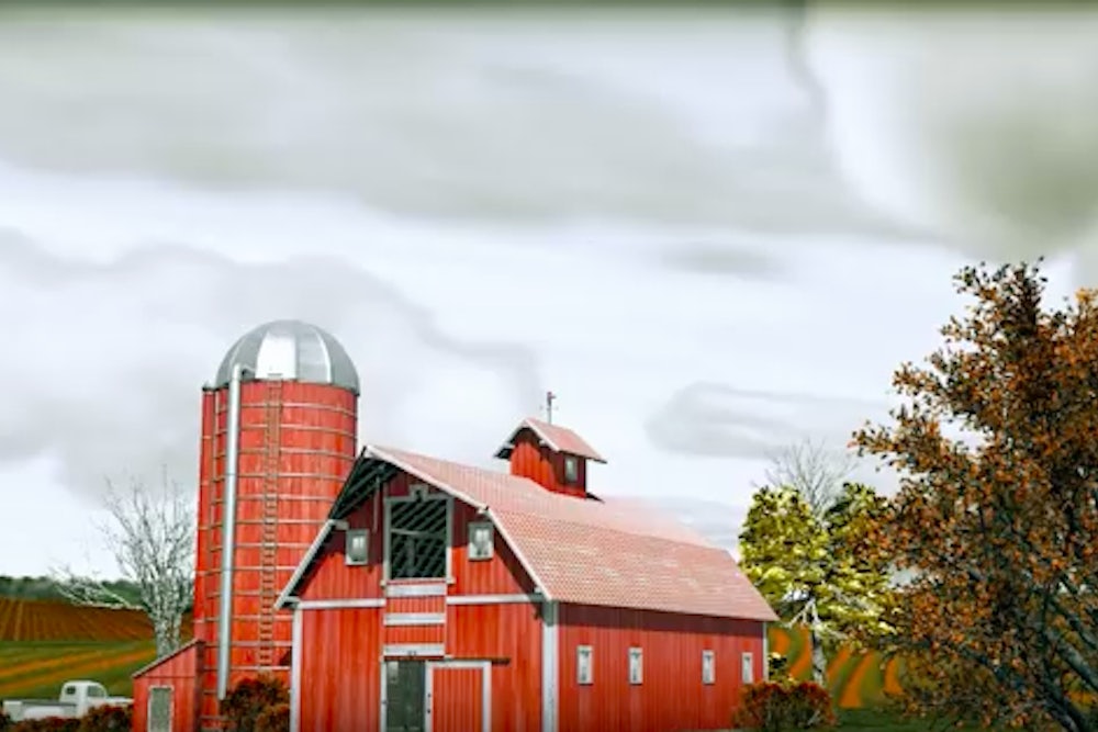 Bright red barns are also a popular choice. The super PAC Right to Rise, which backs Jeb Bush, and the Rubio campaign have both included nearly identical red barns in their ads.