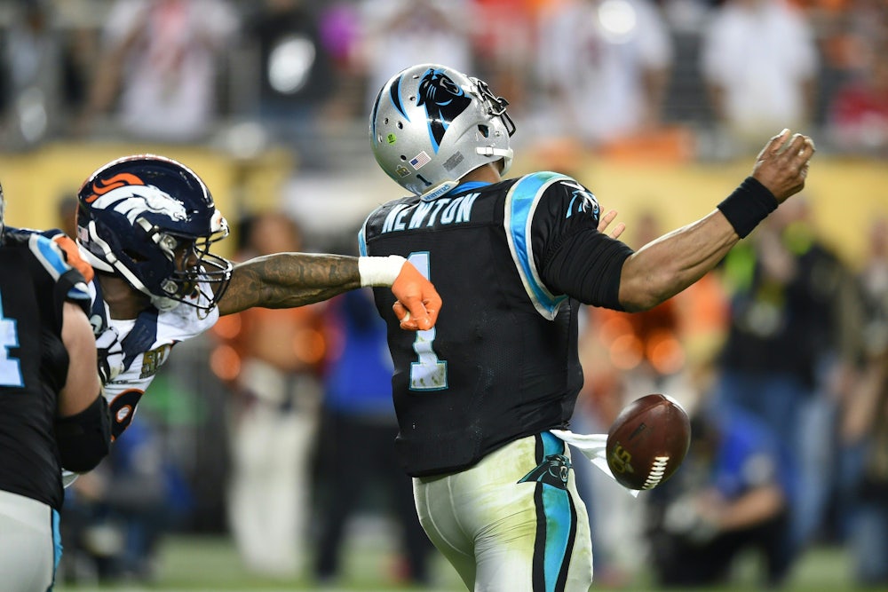 In many ways, last night’s Denver victory looked a lot like its victory over New England two weeks before: they got inside the quarterback’s head early and stayed there. Aqib Talib committed violent penalties for the sole purpose of terrorizing receivers. The Broncos frontline blitzed and blitzed and blitzed, repeatedly pressuring, knocking down, and sacking Newton, who started anticipating hits. Two forced fumbles were the difference in this game and, looking at how hard Denver was hitting Carolina, it’s almost shocking they didn’t cause more. In particular, Super Bowl MVP Von Miller and DeMarcus Ware were unreal, twin berserkers wreaking havoc on Newton and Carolina’s much heralded run game and obliterating everything in their path.