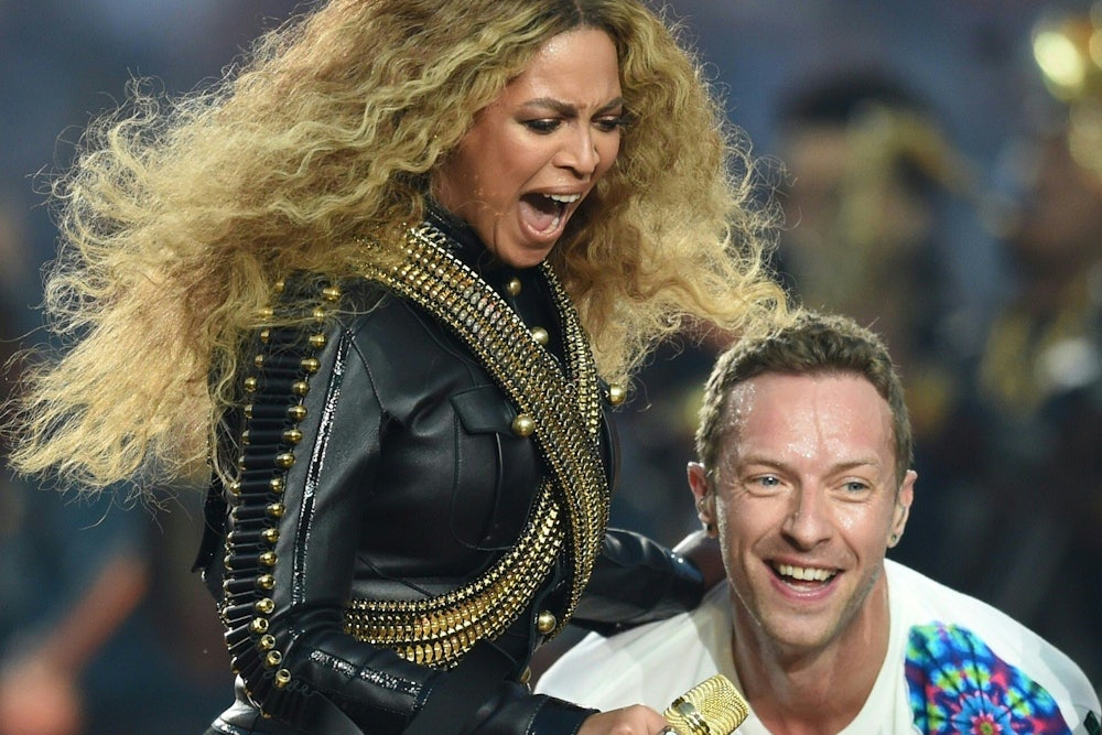Beyoncé and Martin are chummy—and to his, and the rest of his band’s credit, the members of Coldplay are gracious and good-humored in defeat. Coldplay and Beyoncé collaborated on “Hymn for the Weekend,” which is a totally fine song. And on Sunday, Beyoncé joined Martin and the rest of the Lollypop Guild during the Super Bowl Halftime Show.