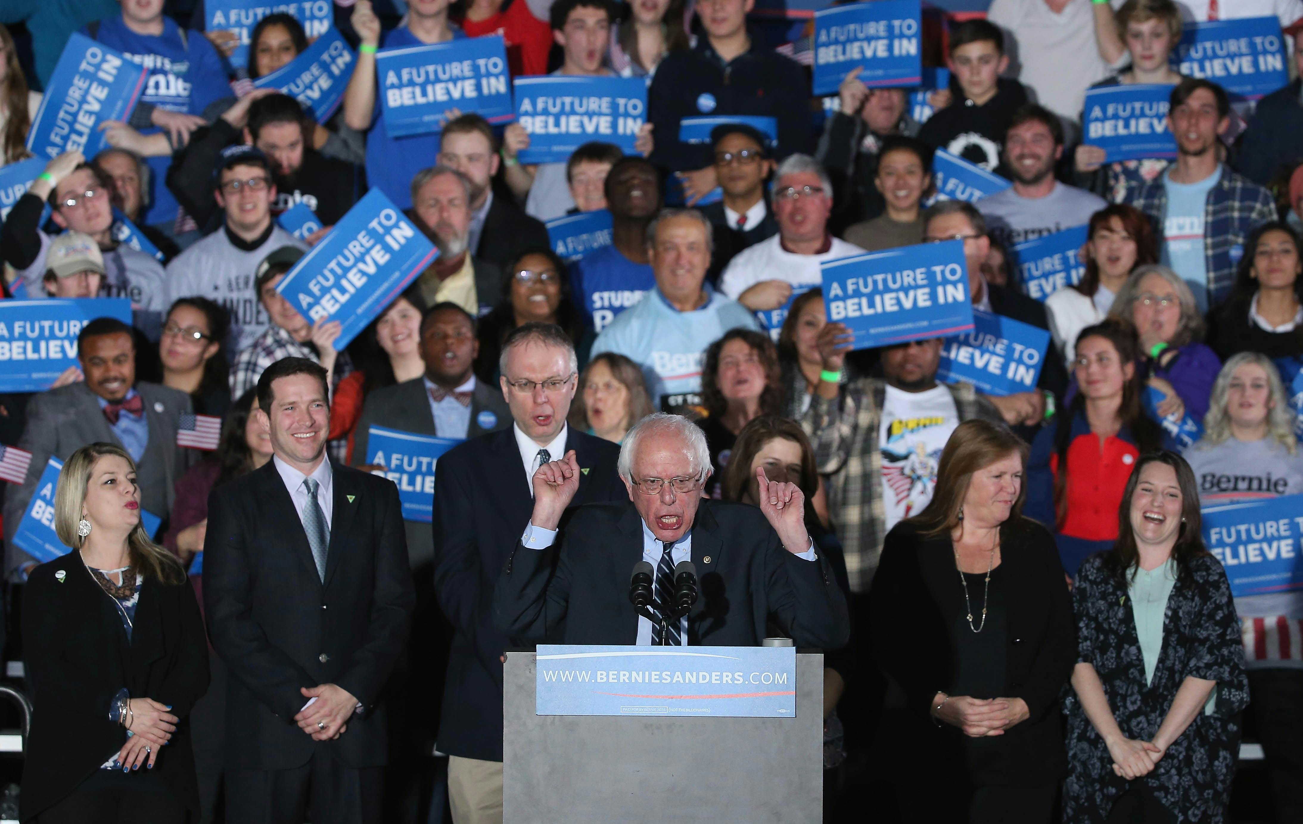 “First of all, congratulations to Bernie, in all fairness, we have to congratulate him. But I heard part of Bernie’s speech. He wants to give away our country, folks! We’re not gonna let it happen. ...We wish him a lot of luck, but we’re gonna make America great again, and we’re gonna do it the old-fashioned way.”