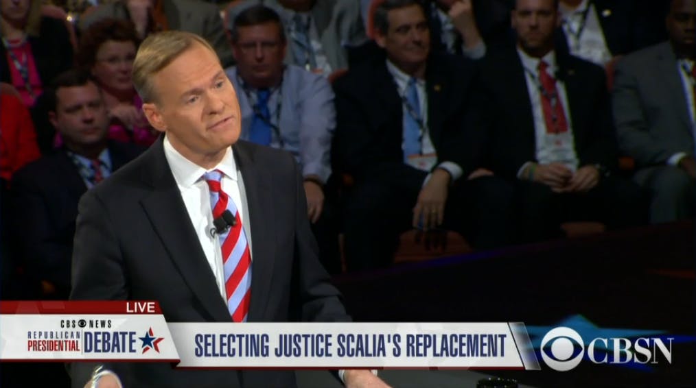 The candidates began Saturday night discussing whether President Obama should nominate someone to replace the late Supreme Court Justice Antonin Scalia. Ted Cruz said that justices have not been appointed during election years for the past 80 years, to which CBS News moderator John Dickerson replied: What about Anthony Kennedy, who was confirmed in early 1988?