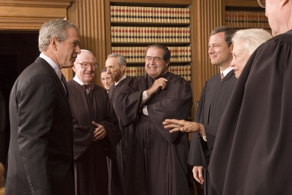 Justice John Paul Stevens, the last Justice to leave the Court before Scalia, disagreed vehemently with every one of those “interpretations” of the Constitution. Although Stevens never voted on same-sex marriage or exclusively Christian prayers at legislative sessions, he would certainly have disagreed with Scalia on both issues.