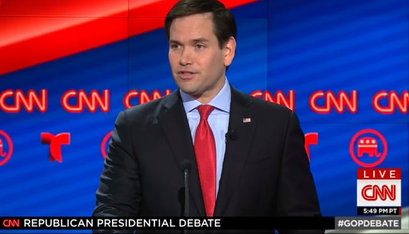 Both Cruz and Rubio referred to their Cuban heritage, perhaps to try and soften their hardline stance, but moderator Maria Celeste Arrarás wasn’t letting them off easy. She wanted to know why they were arguing about who had a harsher stance on immigration, when they could be using their positions as the first Hispanic men to get this far in a presidential election to expand the Republican base.