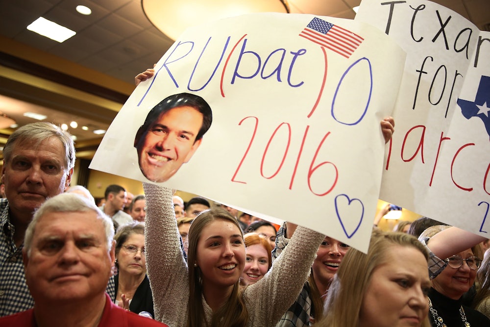But the stakes are also quite high for Rubio. Because Republicans often use certain thresholds to allocate delegates on Super Tuesday, Rubio needs to clinch at least 20 percent to get any delegates in many states, including Texas, which, with its 155 delegates, would bring in a badly needed haul for the Rubio campaign. According to FiveThirtyEight, his PAC, Conservative Solutions, is airing ads in urban areas around the state: Dallas, Austin, San Antonio, and, interestingly enough, Houston, a Cruz stronghold.