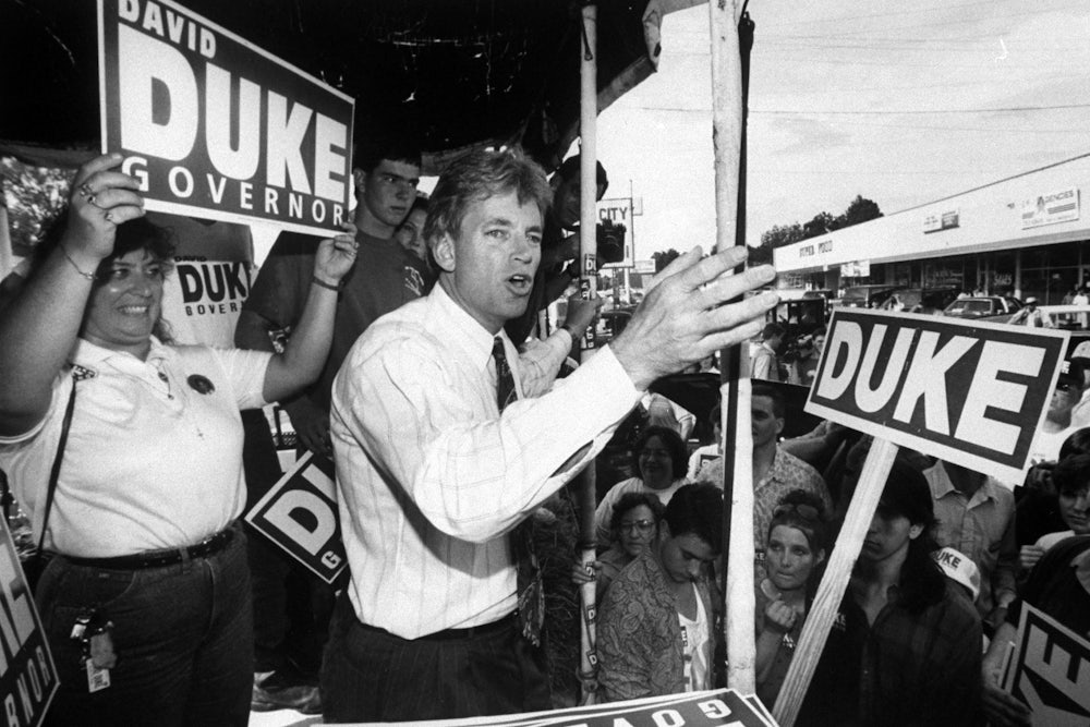 Democrats realized that they couldn’t bring Republicans to their column just by harping on Duke’s long history of racist and anti-Semitic activity. They had to make a different case, pitched to voters who by and large loathed the Democratic candidate.