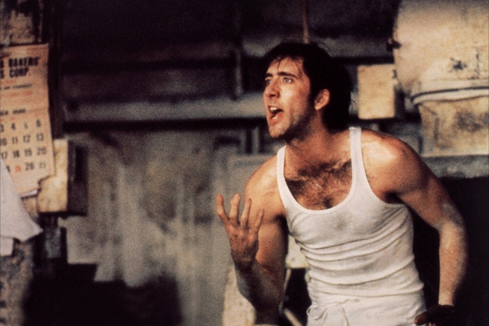 Moonstruck Cage: Cage, one-handed and wearing a dirty undershirt, falls in love with the rape victim and woos her with some Sicilian phrases and an unerringly large moon. Cher makes a cameo.