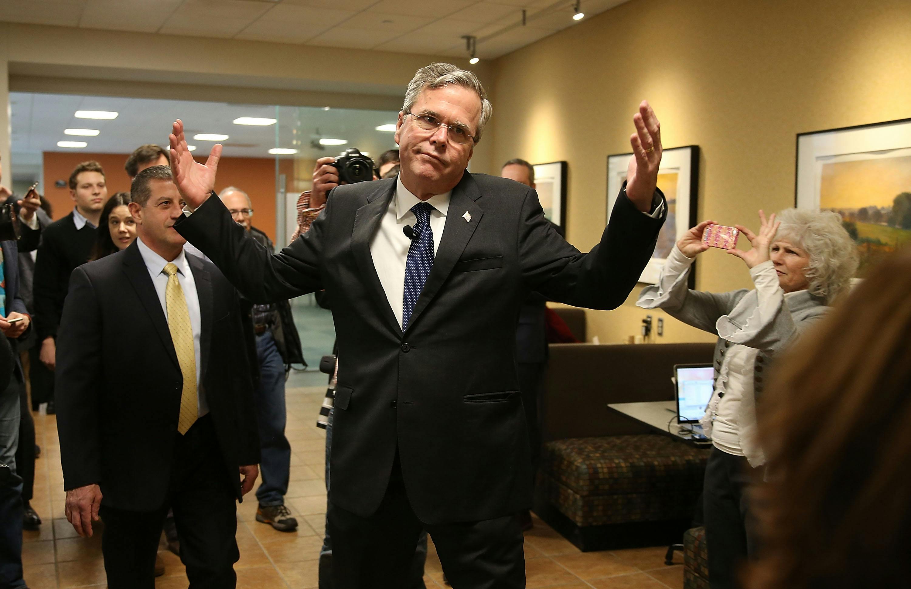 There are pictures of Jeb, of course, beaming beatifically while surrounded by smiling multicultural children. The Department of Ungentlemanly Warfare has posted photos they’ve dug up of other candidates in compromising positions, such as Chris Christie inhaling ice cream while looking like he’s storing four bags of doughnuts under his shirt. Murphy has a special contempt for Christie these days, since Christie broke early for Donald Trump, becoming his Franz von Papen, the former Weimar chancellor who thought Hitler could be civilized once in office: “They made him ambassador to Turkey, next thing you know, he’s in Nuremberg.”