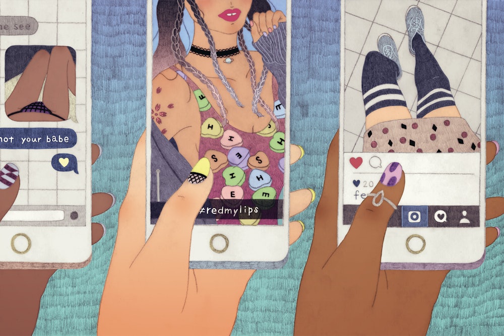If you take Anna’s text at face value, it encapsulates the bleak picture of contemporary teen-girl life Nancy Jo Sales paints in her new book American Girls: Social Media and the Secret Lives of Teenagers. Sales argues that social media spews two all-consuming messages to teenage girls nearly every moment of every day: Always look pretty, never be prudish or slutty. It’s less the wisdom of the crowd than the sexism of it. Teenage girls feel like contestants in a “never-ending beauty pageant in which they’re forever performing to please the judges” by posting “flawless” selfies. They’ve become “hypersexualized” by the pressures of social media, their self-worth measured in Instagram likes, subjected every day to outrageous demands from porn-obsessed boys who insist they photograph their naked bodies for the fleeting approval of their male classmates. Dating apps increase the sexual availability of girls, which cause “some boys to undervalue the importance of any particular girl, and to treat girls overall with less respect,” Sales writes. The boys demand sex quickly and move on if rebuffed: “So how is a girl who is interested in boys to compete for their attention in this crowded space? It wouldn’t be surprising if some girls thought pictures that are provocative, nudes and semi-nudes, would be one way of getting their attention.”