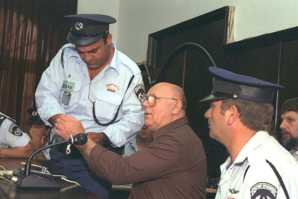 The Eichmann trial had proven that the Israeli government was willing to prosecute international atrocity crimes in its domestic courts under the legal principle of universal jurisdiction, a practice later codified in the Israeli penal code. With this jurisdiction in mind, the criminal proceedings that the Israeli government opened against Demjanjuk in 1987 shared the same historical premise as the U.S. government’s denaturalization process. For Israeli prosecutors, Demjanjuk and Ivan Grozny were one and the same; as Grozny, Demjanjuk had ordered and carried out among the most vicious atrocities perpetrated at the Treblinka death camp. As during the Eichmann affair, Israeli prosecutors saw survivor testimony as the public moral and legal thrust of their case against Demjanjuk. The court received testimony from several Treblinka survivors, whose impassioned recounting of Ivan Grozny’s atrocities transformed the trial from a dry evaluation of guilt into a performance of public memory. The court was especially moved by the testimony of Eliahu Rosenberg, a Treblinka survivor and key witness at multiple postwar Nazi war crimes trials. Approaching Demjanjuk from the witness stand, Rosenberg recalled with certainty the former guard’s “murderous eyes” from the time he had spent removing corpses from the Treblinka gas chambers. As Douglas observes, Rosenberg described Demjanjuk’s eyes in his native Yiddish rather than Hebrew, as if to signify the triumphant defiance of Rosenberg’s small act of public memory. The Israeli court convicted Demjanjuk of crimes against humanity and sentenced him to death, much as a result of convincing survivor testimonies like Rosenberg’s.