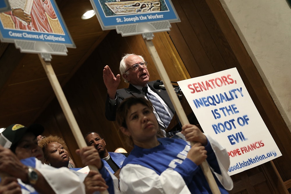Sanders will also meet with Francis, whom he seems to adore. “I’m a big, big fan of the Pope,” he said in an appearance Friday morning on Morning Joe. “He has played an unbelievable role, an unbelievable role of injecting a moral consequence into the economy. He is talking about the idolatry of money, the worship of money, the greed that’s out there, how our whole culture is based on: ‘I need more and more and more. And, I don’t have to worry about veterans sleeping out on the street or elderly people who can’t afford their prescriptions.’”