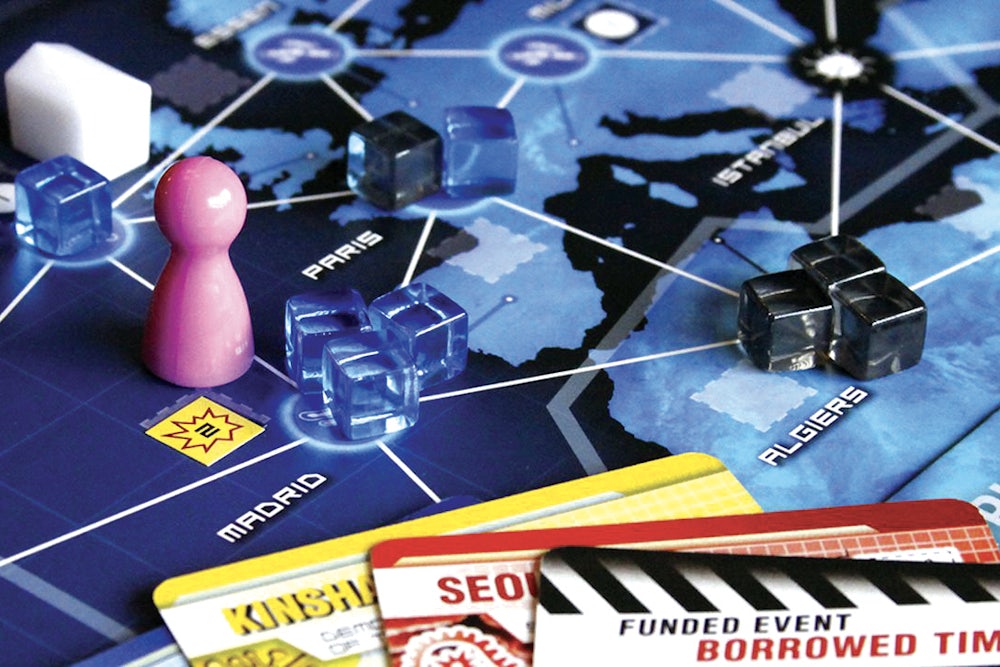 In Legacy, players work together to eradicate diseases spreading across the globe in a yearlong campaign narrative of a couple dozen sessions. The board is permanently changed every time, as players add stickers and rip up cards. In this way, Legacy blends two traditions of board game genres—its mechanics are simple and clean, like European games, and engagingly dramatic, like American ones.