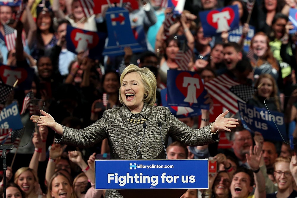 If winning the presidential election were all that mattered, Trump would be Clinton’s dream opponent. The Democratic front-runner struggles with poor approval ratings—55.6 percent unfavorable, according to Huffington Post’s aggregation of the polls—which means she needs to compete against someone who is even less popular than her. Trump fits that bill handsomely, standing at 63.6 percent unfavorability. Furthermore, Trump’s racism and misogyny are likely to motivate the very voters that Clinton most needs to attract: people of color, single women, and young people. And not surprisingly, in head-to-head polls, Clinton enjoys a hefty lead over Trump, even as she trails behind the less-polarizing John Kasich and enjoys a significantly smaller lead (of roughly 5 percentage points) over Ted Cruz.