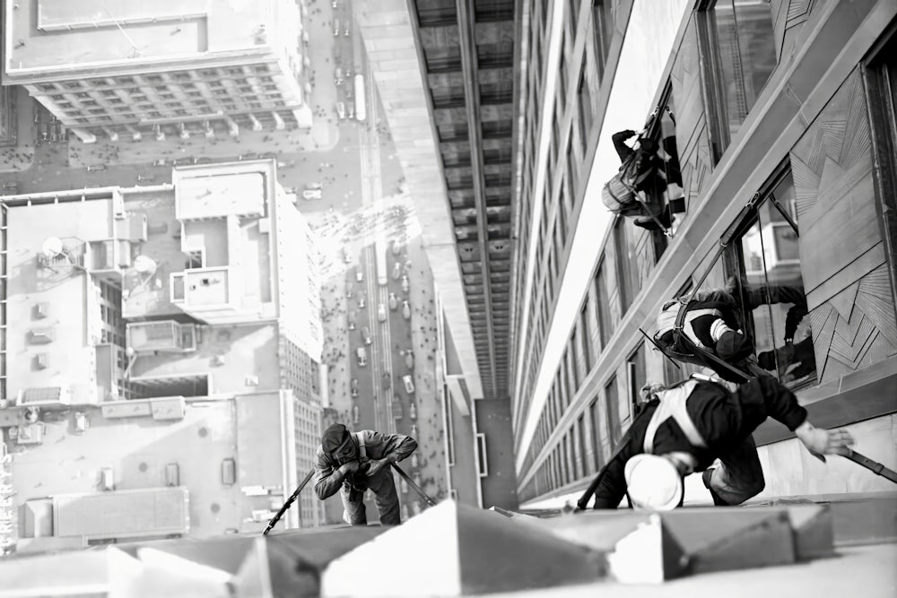 The fifty-fifth floor is the show floor. Green marble and green doors: a great empty loft with bright white walls with black ends of wire sticking out of them and crumbs of plaster on the floor. Through the unwashed windows streaked with dirt the windowed square-walled wilderness of buildings has the same dreary yellow as the streaks. If one looks out of an open window, one can see the water-tanks on top of other buildings, somebody’s expensive penthouse done in green and very luxurious with steamer-chairs, an ad which says “Buy Your Furs from Fox” printed in big letters on the roof of a building and aimed at the occupants of the Empire State, and an American flag. Below that, if one leans out, one sees the streets with the pedestrians and the motor cars very small moving straight and slow along them. To the west, the steamboats and barges moving slowly along the Hudson; to the south, the narrowing wedge of the island studded and pronged at the lower end with its own planting of enormous buildings; to the east, the iron blue-gray East River, strung across with black skeleton bridges, a gray airplane above it; to the north, the dwindled Chrysler tower, a tinny; scaled armadillo-tail ending in a stiff stinglike drill, the white vertically-grooved flat-headed Daily News Building, the chocolate and gilded Luna Park summits of the American Radiator Company Building, like a large “castle” out of a goldfish bowl. Here the light of the setting sun strikes that crowded mass of upright rectangles and blunt truncated towers, bringing out in the raw stone and drab brick their yellows without delicacy or brightness, their browns without richness or warmth. Brooklyn, Long Island City, Bronx, Englewood, Hoboken, Jersey City: straight streets, square walls, crowded bulks, regular rectangular windows—more than ten million people sucked into that vast ever-expanding barracks, with scarcely a garden, scarcely a park, scarcely an open square, whose distances in all directions are blotted out in a pale slate-gray. And here is the pile of stone, brick, nickel and steel, the shell of offices, shafts, windows and steps, that outmultiplies and outstacks them all—that, more purposeless and superfluous than any, is being advertised as a triumph in the hour when the planless competitive society, the dehumanized urban community, of which it represents the culmination, is bankrupt.