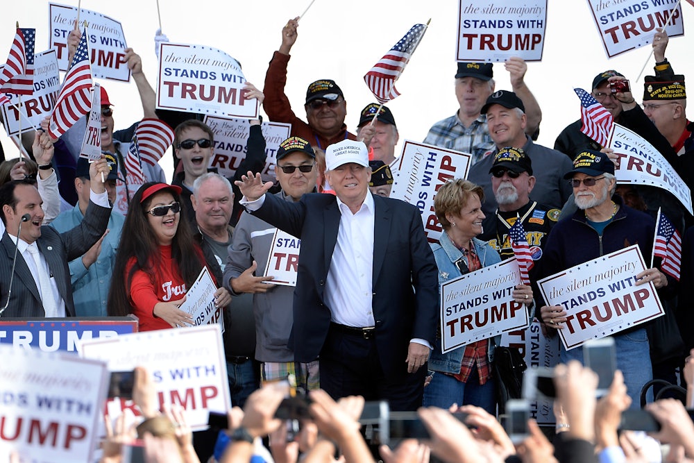 Obama campaign strategist David Axelrod likes to say, “You’re never as smart as you look when you win, and never as dumb as you look when you lose!” Has this ever been more true than in the case of Donald Trump? On the stump, Trump is not that great. He rambles. He’s an absolute failure at faking religious feeling. He can’t get basic local details right—in March, The Atlantic noted that at a North Carolina rally, Trump praised Tom Brady, seemingly unaware he was in Cam Newton land. (Remember when John Kerry was basically a war criminal because he ordered the wrong cheese on a locally beloved sandwich?) As with Goldwater, this would be a disaster, if he didn’t have one thing going for him.