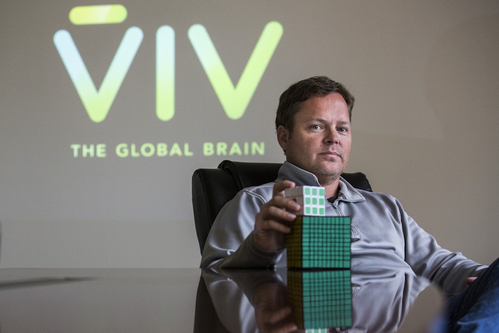 Right now, we use phones because they’re the fastest way to get all of our stuff: messages, contacts, photos, music, documents, and the like. For all the talk of the cloud, there’s still a very real need for a device to access online life. The tech giants think we should be more sci-fi—as with Samantha, the artificial intelligence from the movie Her. Google and Microsoft and newcomers like Viv Labs (the original creators of Apple’s Siri) each want to be the first to create an affordable, ethereal presence with persistent access to both the Web and personal data. These AIs should be able to predict what you need, and then carry out the tasks themselves. If these tech companies get what they hope for, AIs will be the new site of digital life.