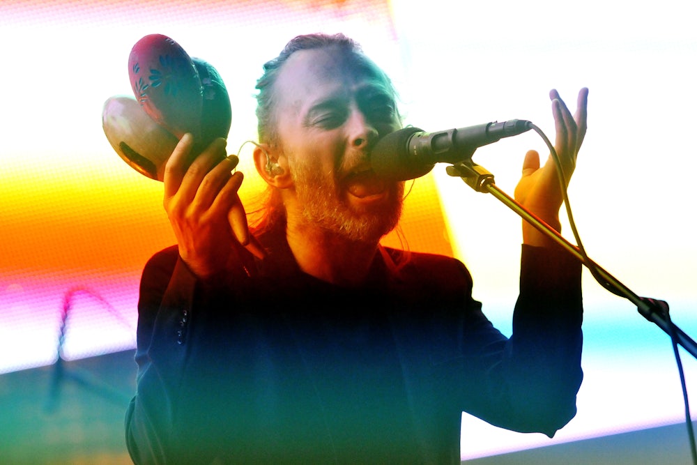 Radiohead has a way of doing this to writers, even very fine ones. As a recovering music critic and (increasingly disillusioned) fan, I understand how difficult it can be to capture the feeling of a great Radiohead song in words. I understand the urge to reach for new heights in describing their music, to glean meaning in the mess, to match Radiohead’s ambition with your own. I also know how futile that is—not because any given music writer’s talents are no match for Yorke’s, but because his words don’t merit the massive critical effort devoted to them over the years. Yes, his lyrics are “cryptic,” but that’s just another way of saying that they intentionally make no sense. Many critics and fans see this as a challenge rather than acknowledging the more obvious truth: Yorke’s greatest lyrical gift is his practiced inscrutability.