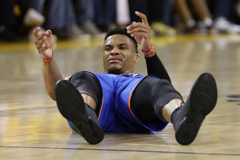 But more than anything, Oklahoma City lost the last two games of this series. There were a slew of errors: abandoning a winning strategy of pick-and-rolling the Warriors to death; resorting to Durant and Westbrook hero ball; sloppy switching that put Steven Adams or Enes Kanter on Steph Curry or Thompson; not taking care of the basketball; Westbrook falling asleep and/or refusing to close out on defense; Durant taking a million terrible shots in the first half of Game 6; every member of the Thunder bricking bunny after bunny and putback after putback; Andre Roberson refusing to take a wide open three-pointer because he was afraid he’d miss it; Serge Ibaka fouling Curry behind the arc with less than a minute left in Game 7. These mostly unforced errors cost the Thunder a trip to the NBA Finals. They have a lot to be proud of, but they only have themselves to blame for not going further.