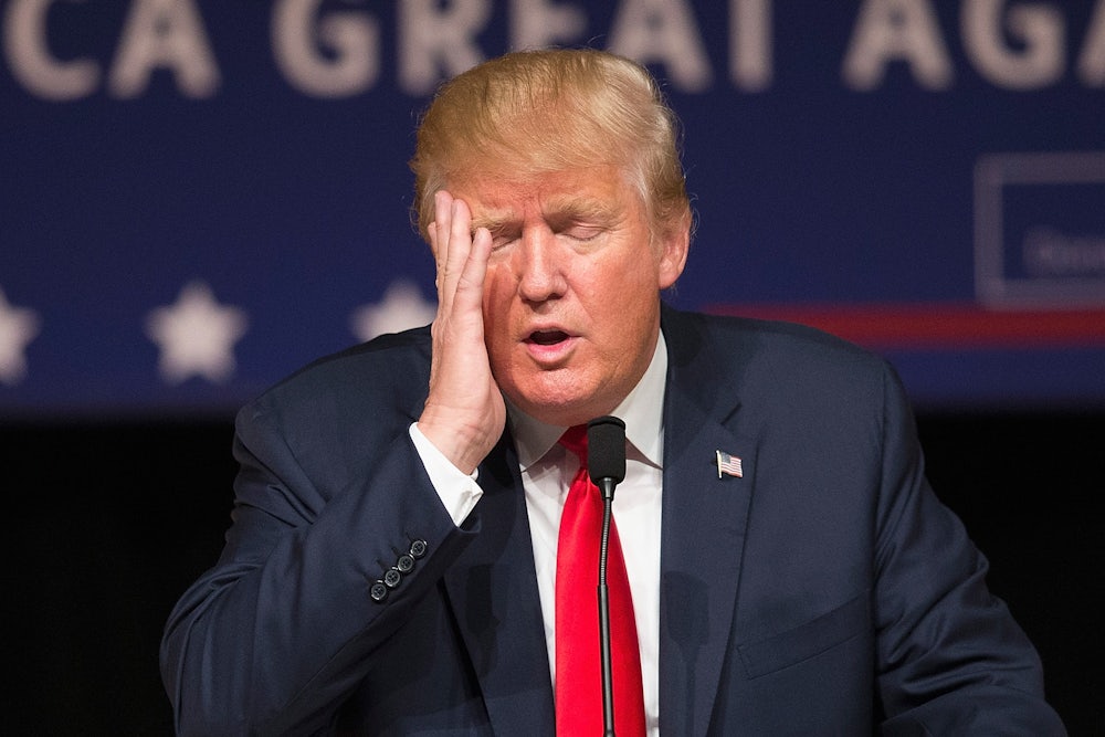 Corruption, racism, thuggery, incompetence—it’s Trump in a big ugly nutshell. The interesting aspect is that all these characteristics were evident months ago, in the heat of the Republican primary race. The difference is that they look way scarier and crazier in the new light of a general election campaign that involves people outside the GOP electorate. There’s been a lot of talk about how the mainstream press has normalized Trump, but the mainstream press is just as aghast at the thought of a demagogic fraud being president. He was, in fact, normalized by the primary, when his opponents declined to attack him or failed to call him out forcefully enough, hoping to get some of Trump’s supporters. Trump at the time appeared to be invincible, a juggernaut, but he is suddenly starting to look like his real self again: a clown, a huckster, a weirdly coiffed conspiracy theorist.