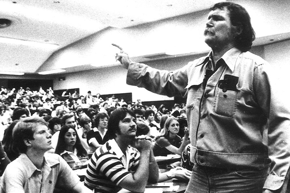 When Crews begins to pursue his literary ambitions—after a stint in the Marines and a period working at a ketchup factory in San Francisco while hanging around beatnik bars trying to get Kerouac to talk shop—Geltner’s portrait of the author gains steam. Enrolled in the University of Florida, Crews studied under the literary legend Andrew Lytle, a spokesman for the Southern Agrarian movement and one of Flannery O’Connor’s favorite teachers. Lytle became a father figure for Crews, and he fostered in him the idea that writers were a class apart from other people. At one dinner at a fancy restaurant, Lytle, sensing Crews’s discomfort with the elegant surroundings, picked up his soup and slurped it from the bowl. “Remember son, we’re better than they are,” Lytle told Crews. “We’re writers.”