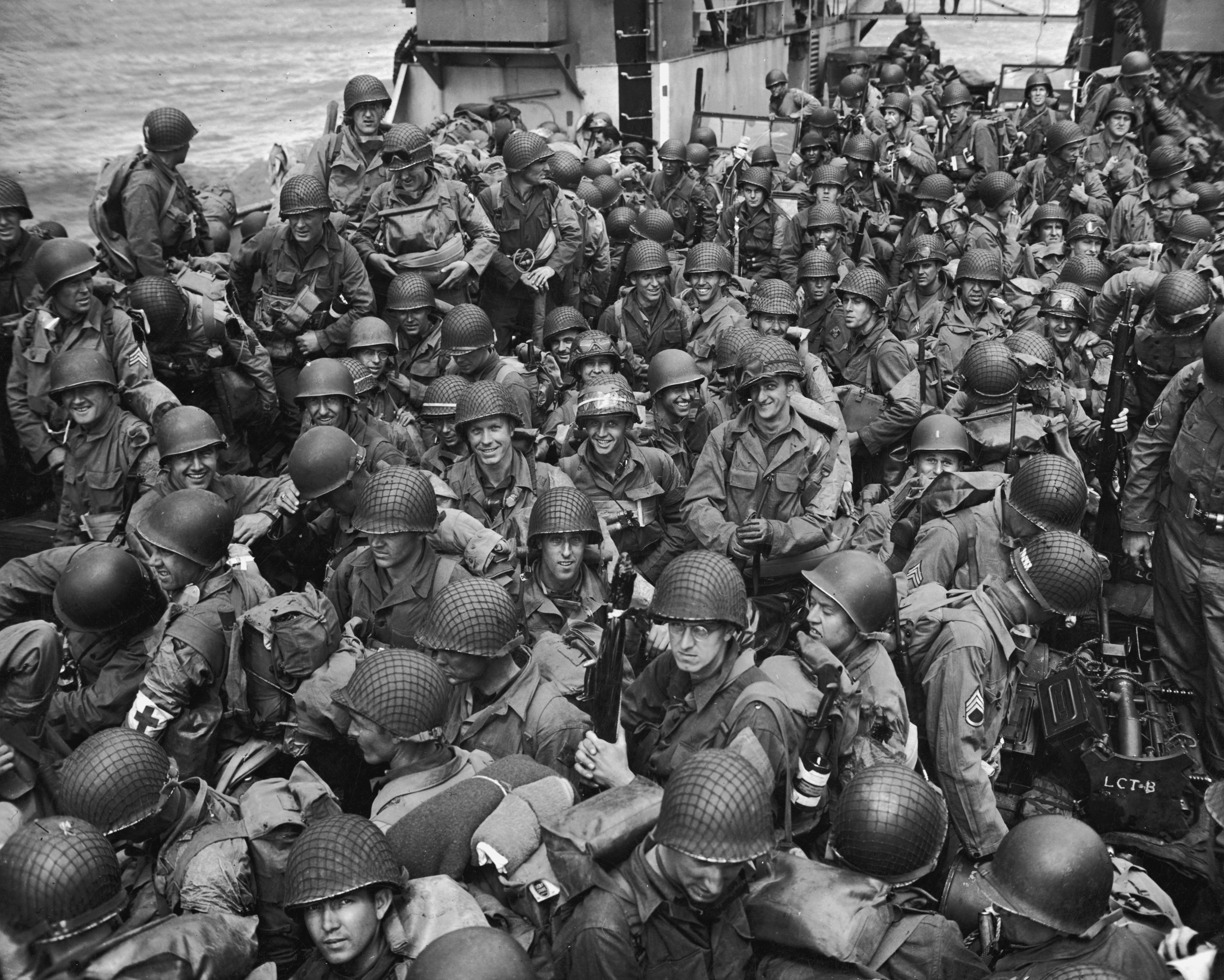 A couple of hours before this the chaplain prayed for us. Out in the breeze or down, in the engine room men bared their heads. I looked back toward England and wondered: something marvelous was going on. All the world’s ships were coming our way. Big ships, little ships, convoys with barrage balloons tugging them ahead. British ships, Dutch ships. Free French ships. Their names mingled like a chant. The British names came down through history: The Black Prince, for instance, buddying up with the old battlewagons Texas and Arkansas. One transport was the Susan B. Anthony (sunk within hours).