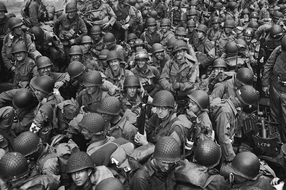 And now runty little barges go ashore like a line of beetles. They are brave men aboard. Except for the luck of the draw I would be on one. I pick out a squarish little craft with a lace of foam in front. It is like picking out a particu- lar ant. What would I be doing now if I were aboard, instead of Ken Crawford of Newsweek? Would I have the guts? God knows. The one I have picked reaches the beach, loses its foam, waddles up —I can’t see her but I bet the seasick GIs are glad to exchange horrors.