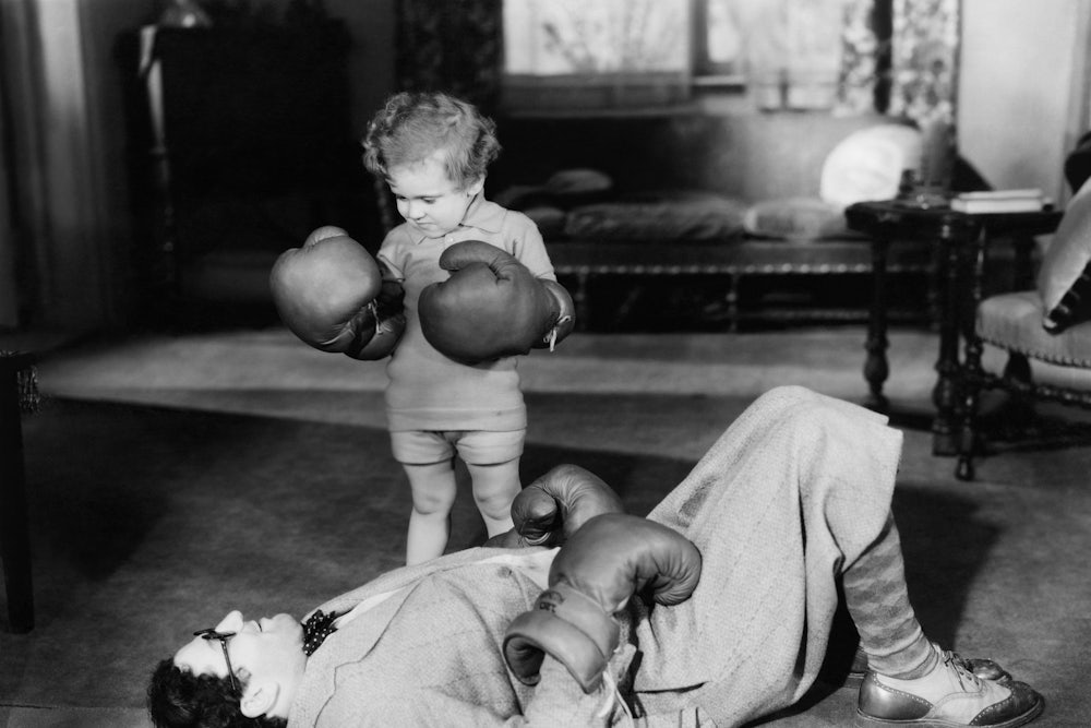 A soft-hearted bully, Crow often goads Dad and the Boys into a dynamic based on a sense of their shared manliness: watching the kids tear through the house, Crow compares them to “blood-drunk fox cubs”; after his night with the Plath scholar, Dad confesses, he came downstairs to find Crow “on the sofa impersonating me pumping and groaning.” Under his management their household becomes a kind of boys-only club, sometimes an aggressive one. The shortest entry in the book is from Dad: “The boys fight.”