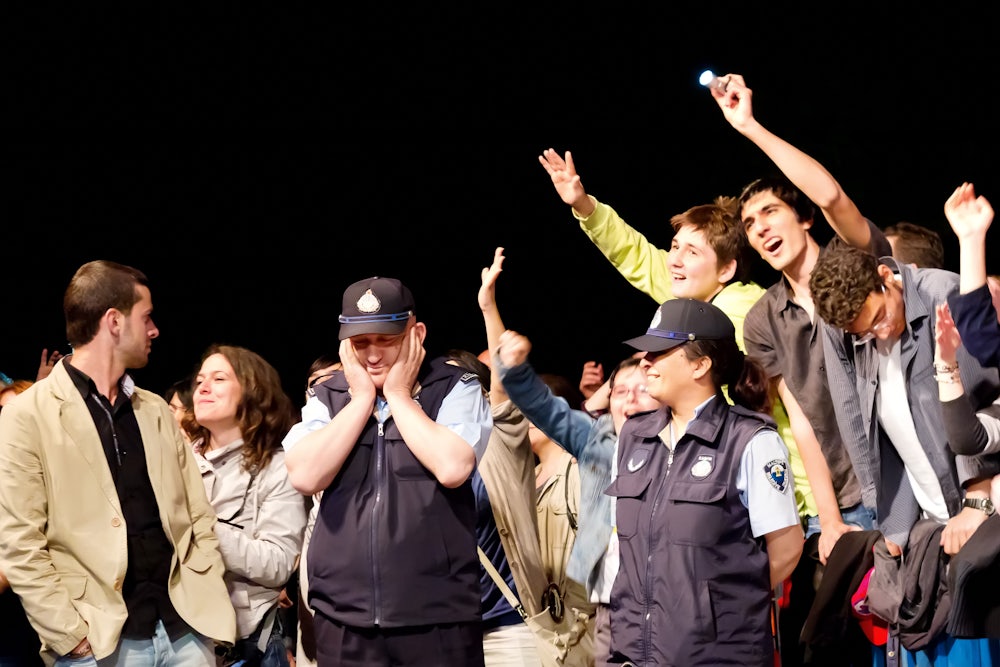 Then she goes into the hall, overcomes the reflections and the anxiety, and starts to speak.