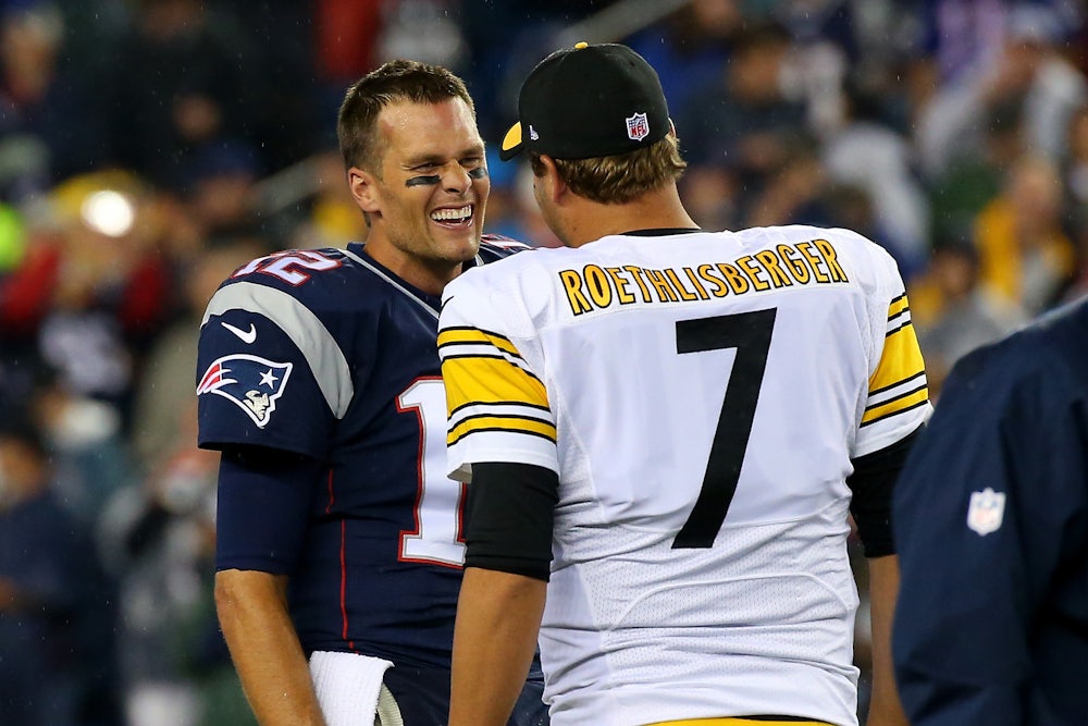 These were always pretty funny choices—Brady and Roethlisberger are probably the two most hated players in the NFL outside of New England and Pittsburgh, respectively—but Trump has never seemed particularly aware of the dynamics of fandom. Trump’s fixation on Brady, in particular, is almost adorable—he brags about being his friend everywhere, especially in areas where Brady is singularly unpopular. Brady has been a bit more coy about their friendship: Though he had a “Make America Great Again” hat in his locker last season, he bristled when pushed to answer questions about his support for Trump’s racist policies.