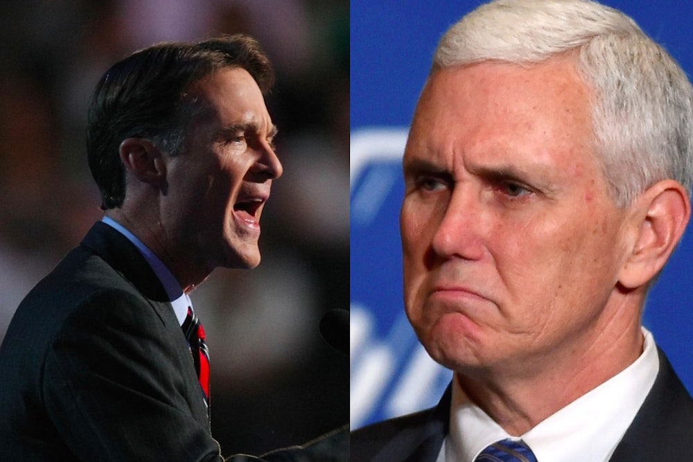 His return coincides with the emergence of his state’s Republican governor, Mike Pence, as a leading contender to be Trump’s running mate. Normally that kind of thing might spook someone like Bayh out of running statewide. But Pence is if anything a more lackluster politician than Bayh—barely above water in his re-election campaign against Democrat John Gregg, hobbled by an intellect that rivals Rick Perry’s. So not only might Bayh prevail despite a prominent Hoosier at the top of the Republican ticket, but we might be treated to an “oops” moment on a general election debate stage.