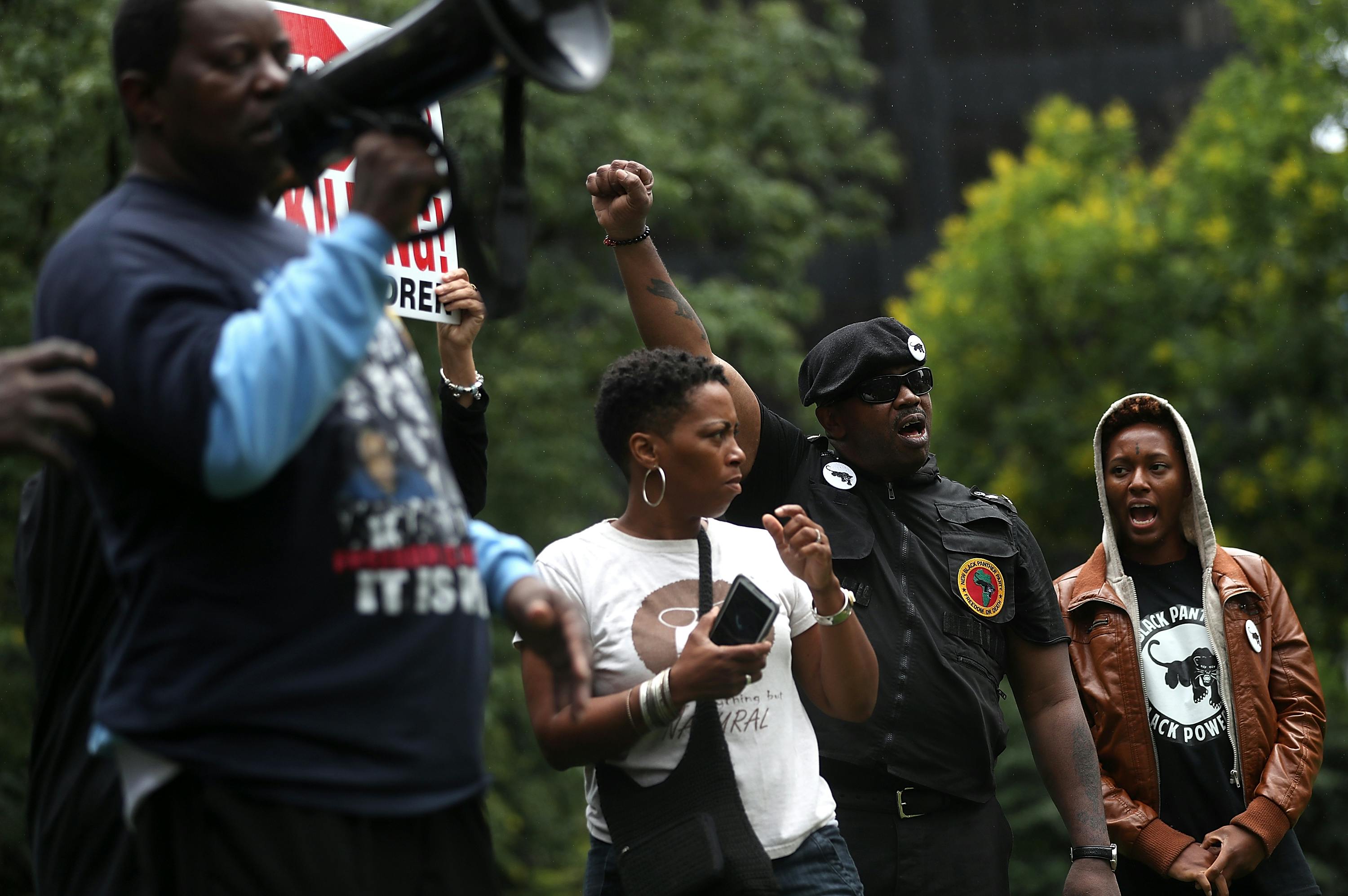 Your average Clevelander probably couldn’t pick Ralph J. Perk Plaza out on a map. The grassy space is tucked at the intersection of East 12th Street and Chester Avenue, three blocks east of Quicken Loans Arena, site of the Republican National Convention. Named for a 1970s mayor whose wife famously turned down a dinner date at the White House because it interfered with her bowling night, the park is barely an acre and change, best known now as a place for a quick smoke break during the day, or for buying a dime bag at night. But on Saturday afternoon, two days before the convention opened, voices were pinballing off the metal and stone of the surrounding buildings: “Black power! Black power! Black power!”
