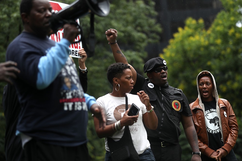 The National Convention of the Oppressed-Black Unity Convention had Perk Plaza for the afternoon, for the first scheduled protest of Donald Trump’s coronation. On a raised hump of ground, a dozen activists, speakers, and members of the New Black Panther Party (who had announced they’d be coming to Cleveland armed), local Black Lives Matter activists, and a smattering of other social justice groups stood together before a group of more than 100 attendees as occasional rain spit out from a gray sky. Malik Zulu Shabazz, a civil rights attorney and former head of the New Black Panther Party, led off the event in his characteristically fiery manner: “Mr. Trump is an uncouth racist, an uncivilized savage.”
