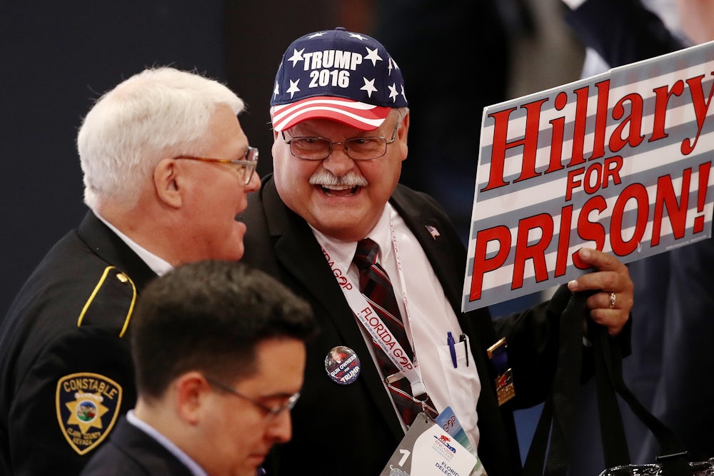 The hum of death and crime harmonized at times with a cathartic certainty that Hillary Clinton should be in prison. The crowd repeatedly broke into chants of “lock her up,” and on a few occasions attendees were egged on by speakers on stage—including former Army General Michael Flynn, one of Trump’s VP finalists—which made the view all but indistinguishable from official party doctrine. For all the appeals to fear, the only thing under any real threat was the party norm against inciting vigilantism against political opponents.