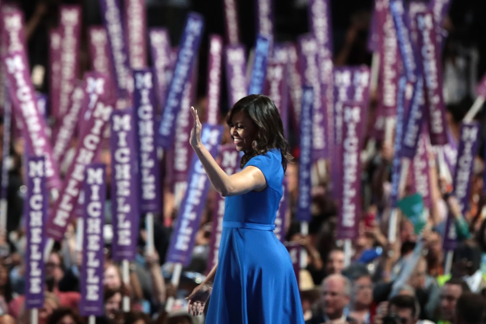 There was nothing novel about the pitches themselves. Obama praised Clinton’s aptitude (a “true public servant”), conviction (“Hillary knows this is much bigger than her own desires and disappointments”), and resilience (she’s “never quit on anything in her life”). But they came on their own time, and not before Obama made clear she was speaking from the perspective of a black American living—thanks to this country’s unique and exceptional capacity for self-betterment—in a “house built by slaves,” as a mother who wouldn’t trust anyone else with the responsibility for her daughters’s future, and as an endlessly scrutinized female public figure who will live to see a generation in which it is taken “for granted that a woman can be president.”