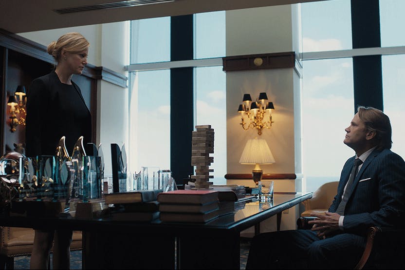 LG: There’s an ominousness to this story, a sense of pieces being put together in order to fall, which translates itself so visually. I thought about David Mamet, David Cronenberg, and David Fincher, especially House of Cards and The Social Network.