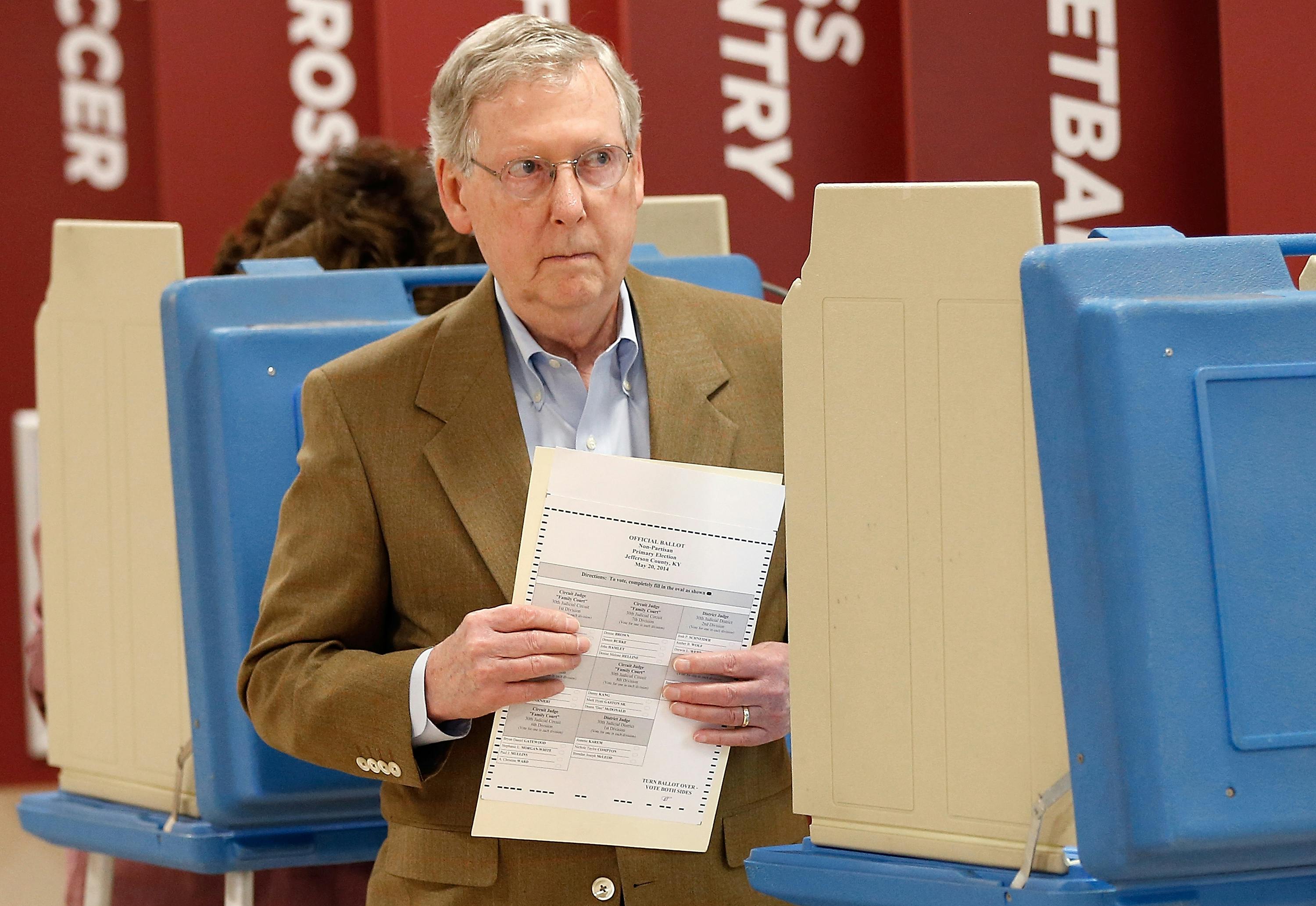 McConnell did not mention Trump as being a drag on Republican down-ballot races, but he chided Trump’s campaign tactics. The Kentucky senator said he hopes Trump “settles down and follows the script.”