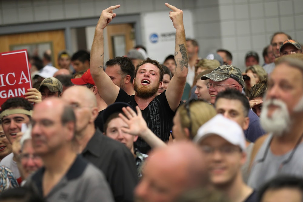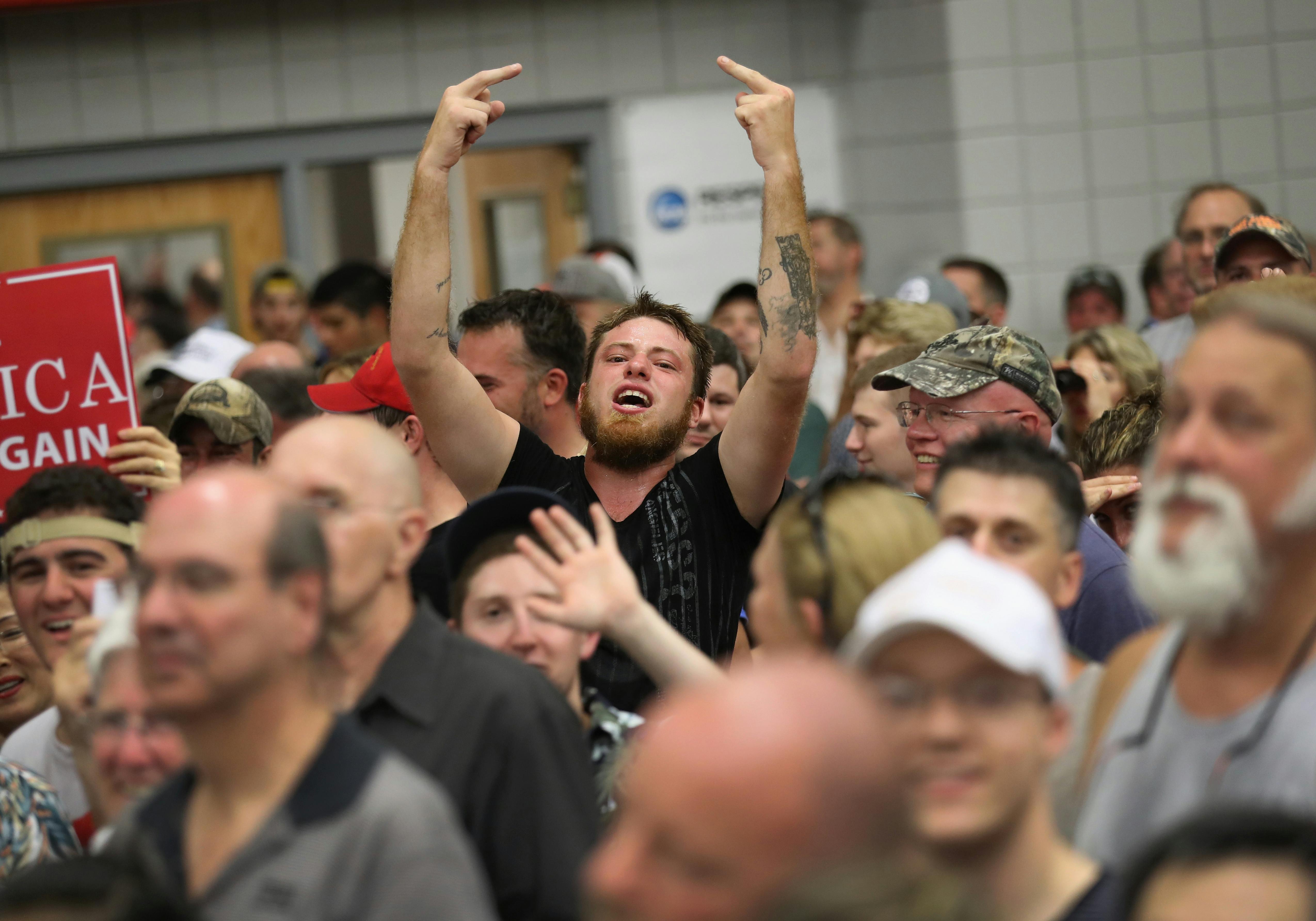 The poll also asked: “If Hillary Clinton is elected president do you think it will be because more people voted for her, or because the election results are rigged for her?” The result here is that 51 percent say Clinton would have won legitimately, against 39 percent who would say it was rigged—but among Trump supporters, only 19 percent would confer recognition upon the election result, versus a whopping 71 percent who say it would have been fixed.